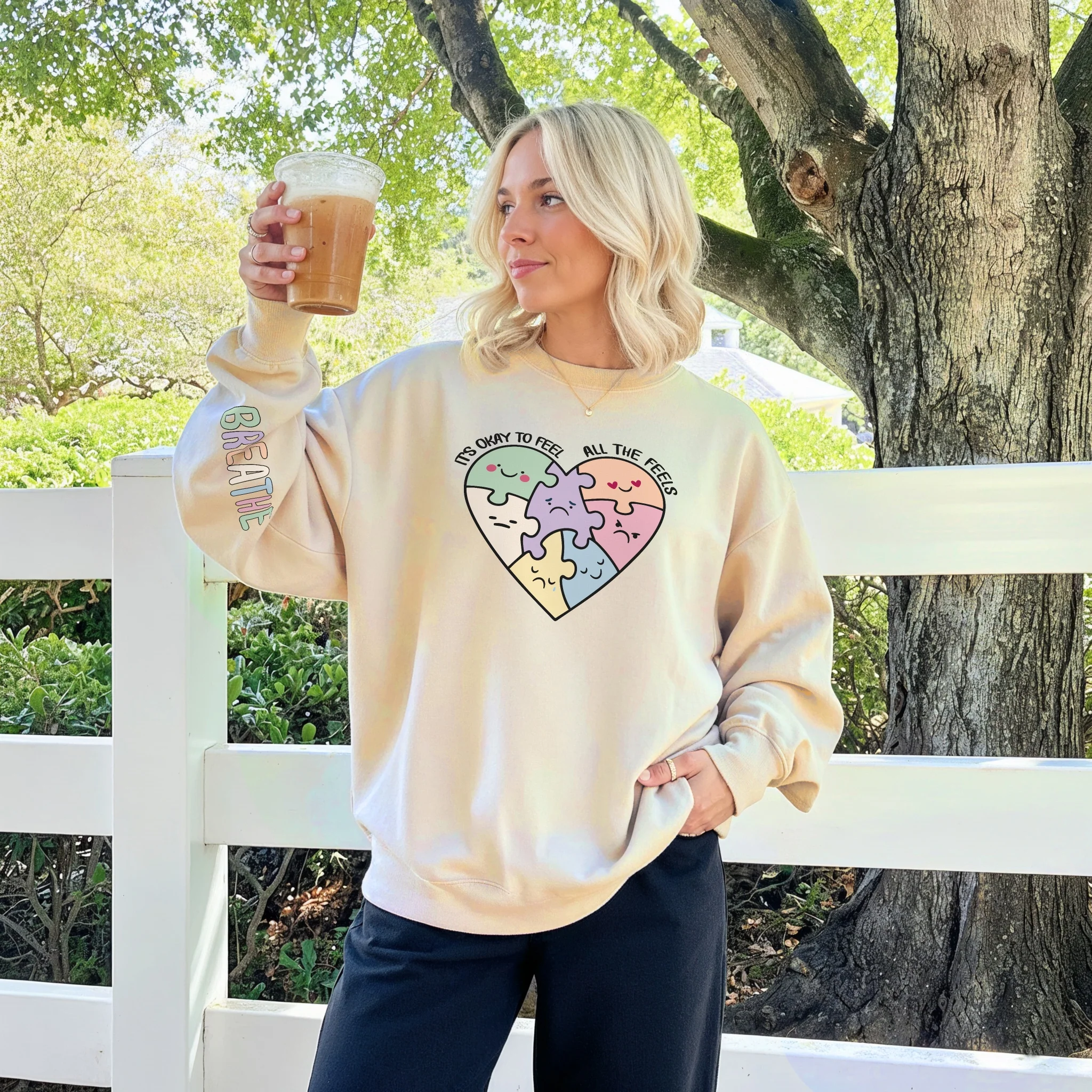The All The Feels Sweater is a reminder that being human doesn’t require perfection. It honors every emotion—joy, sadness, frustration, and hope—making space for the full spectrum of what it means to feel. Designed for both hard days and good ones, it gently normalizes emotional honesty and self-acceptance. Each purchase helps support mental health programs focused on care and connection—because all your feelings belong, and you deserve to honor them.