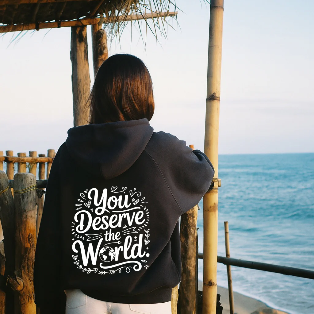 The Deserve the World Hoodie is your soft reminder that you don’t have to earn your worth — you already have it. Whether you’re always the one supporting others, or just need to hear it yourself… this message is for you.